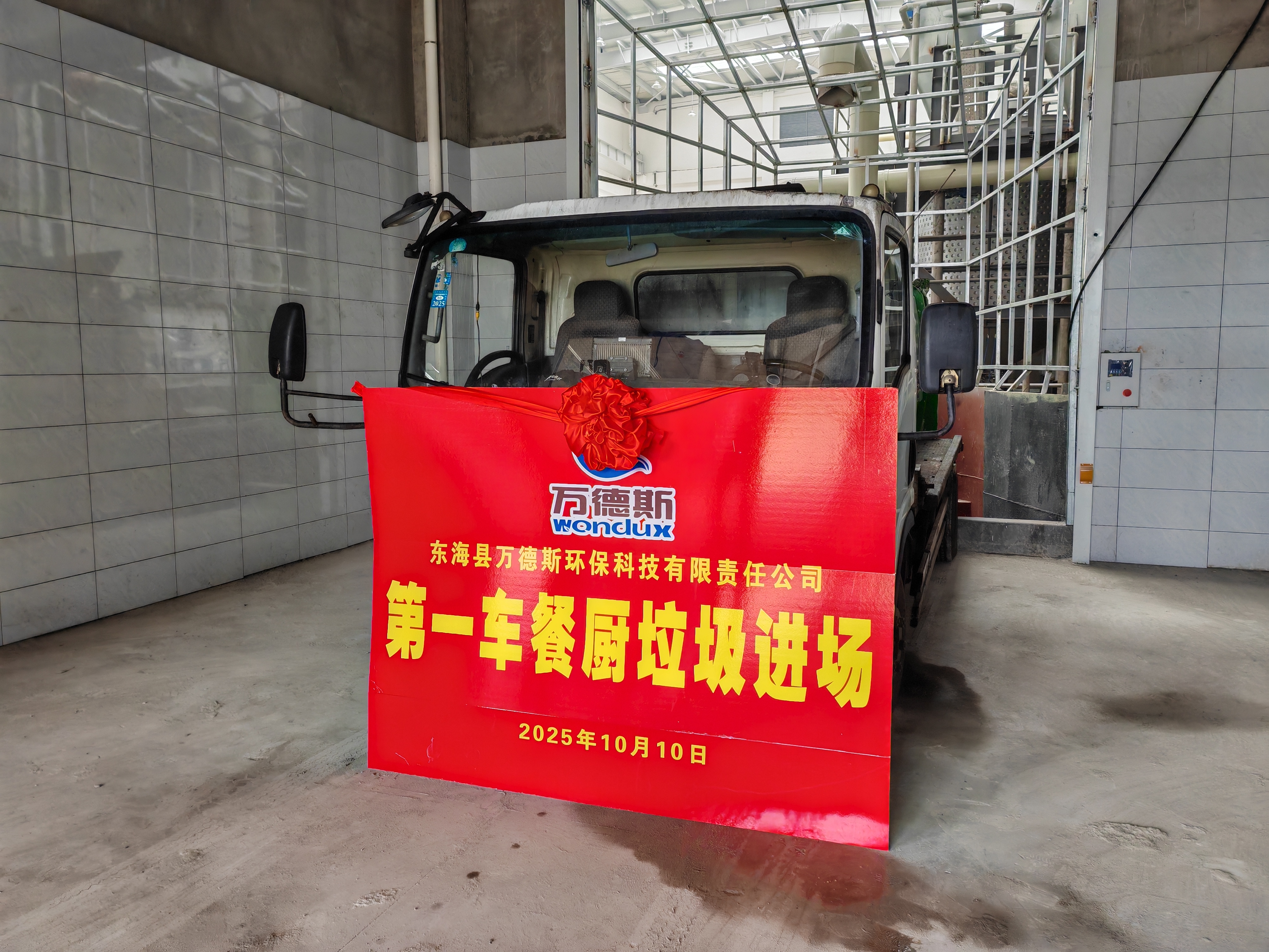 10月10日上午,東海縣餐廚廢棄物處理項目現場傳來關鍵進展——首輛滿載餐廚垃圾的收運車在預處理車間順利完成卸料,標志著由東海縣萬德斯環保科技股份有限責任公司負責實施的該項目,正式進入進料調試試運行階段,我縣餐廚垃圾處置自此實現“合理化、規范化、積極化、無害化、資源化”的重要突破。