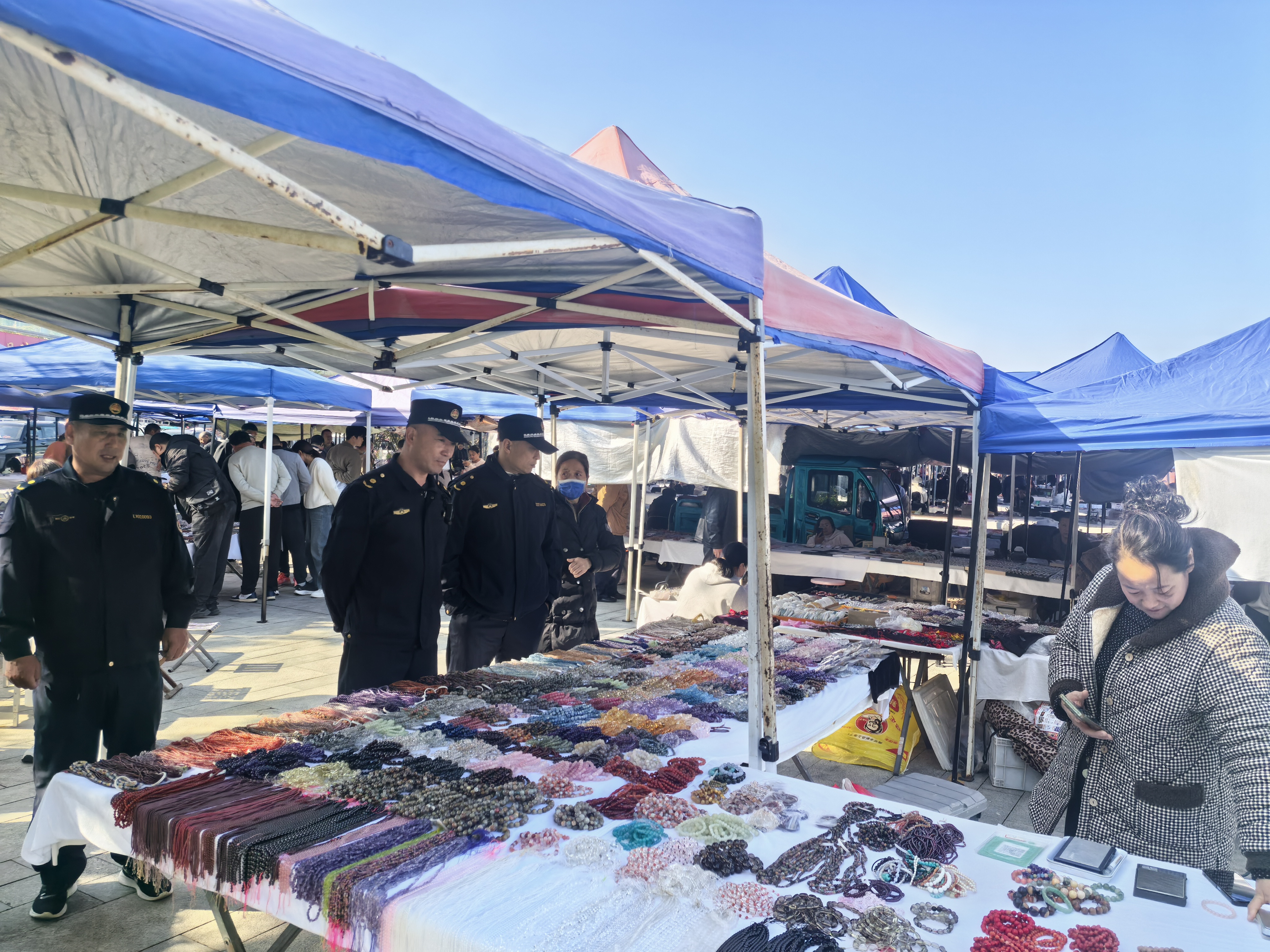 每逢水晶城逢大集的日子,早上7時(shí)許,城管中隊(duì)管理人員就已經(jīng)到位,疏導(dǎo)道路交通,保障車(chē)輛通行,對(duì)亂停亂放的非機(jī)動(dòng)車(chē)輛進(jìn)行移位管理。同時(shí)對(duì)水晶制品攤位正常巡查,及時(shí)處理商戶的各種訴求,為商戶提供便捷服務(wù)。到崗前,隊(duì)員們便整理好著裝,帶著熱線轉(zhuǎn)辦的工單,開(kāi)啟一天的轄區(qū)巡查工作?!耙粋€(gè)上午至少五至六趟循環(huán)巡查,如果有需要臨時(shí)處理的情況,我們都會(huì)隨時(shí)與中隊(duì)保持聯(lián)絡(luò)。”城管中隊(duì)隊(duì)員李軍說(shuō)。
